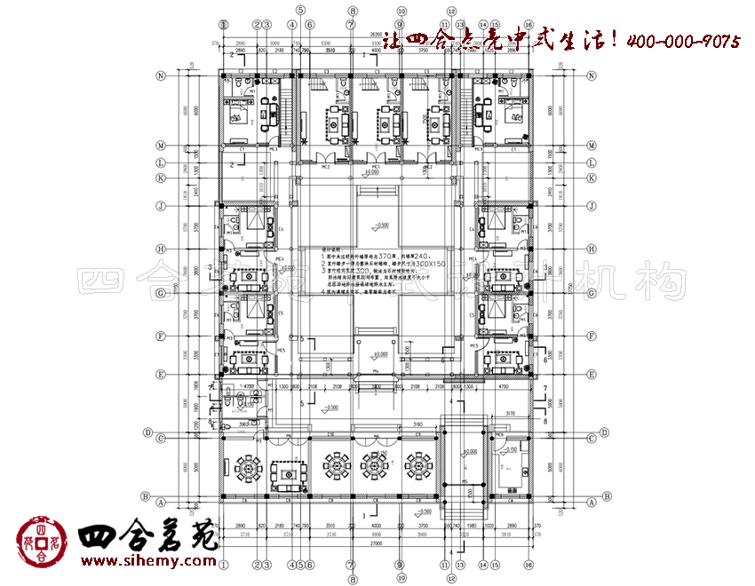 飛檐翼角、華榱璧珰,庭院四面圍合,房屋錯落,庭院融入元素構(gòu)建設(shè)計表情,旨在給觀者更多園趣與體驗。