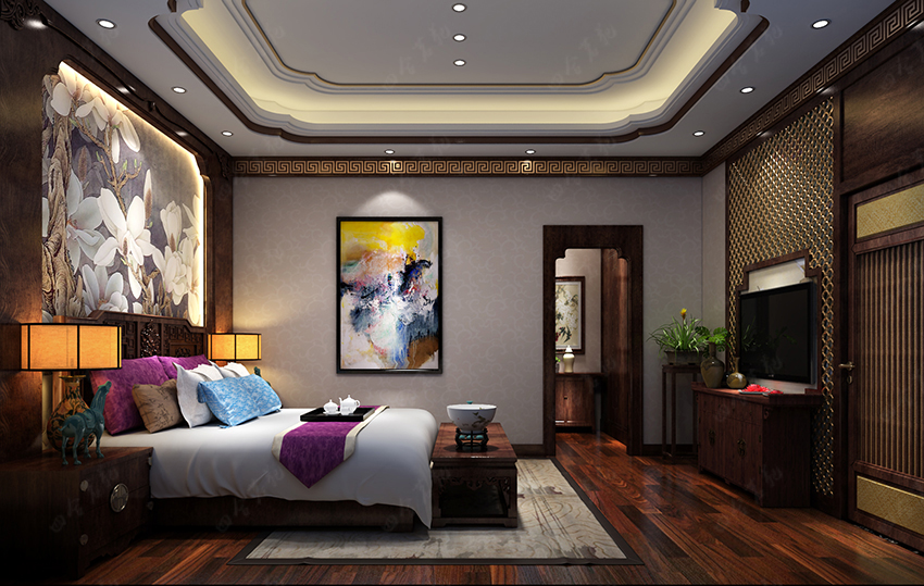 造型簡潔的家具,色彩豐富的軟裝,通過色彩及形體變化的挖掘來調節(jié)空間視點。古典的裝飾氛圍搭配現代的典雅燈具,詮釋出低調的奢華感。