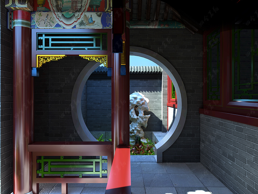 四合院設計,大,有軒昂之意;小,含清幽之美。透過游廊后的月亮門,可見方寸之間亦是郁郁蔥蔥、秀麗多姿。